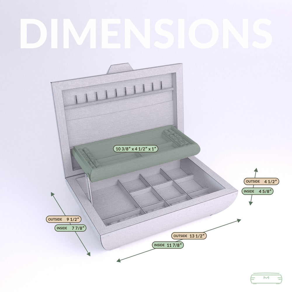 The Elegance jewelry box is an excellent choice for anyone looking for a large jewelry box that is both beautiful and functional. Mikutowski Woodworking is a small family-run business based in the USA, and we take pride in our quality and stand behind our products.