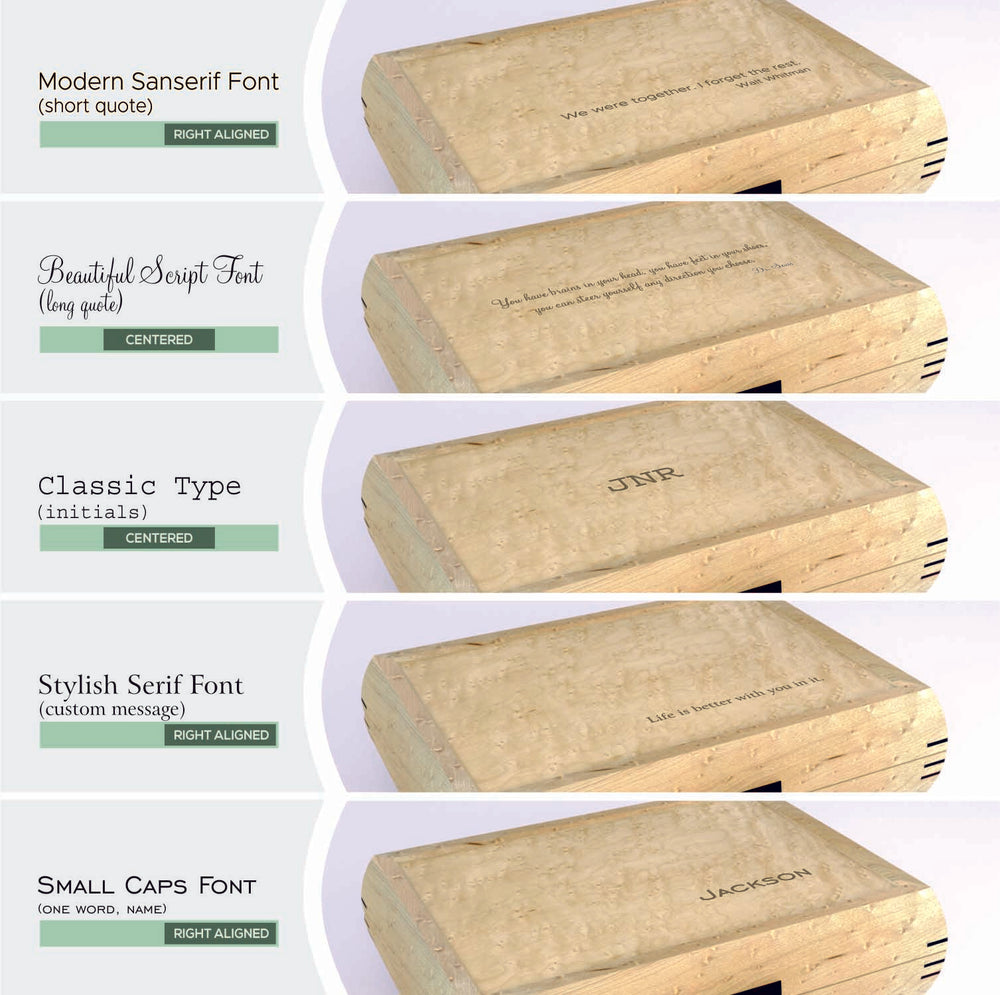 The Elegance jewelry box features handmade Wenge feet, corner splines, and a lid handle. These accents further enhance the box's overall appearance, giving it a unique and elegant look. The handmade accents also add to the box's durability, ensuring that it lasts for a long time.