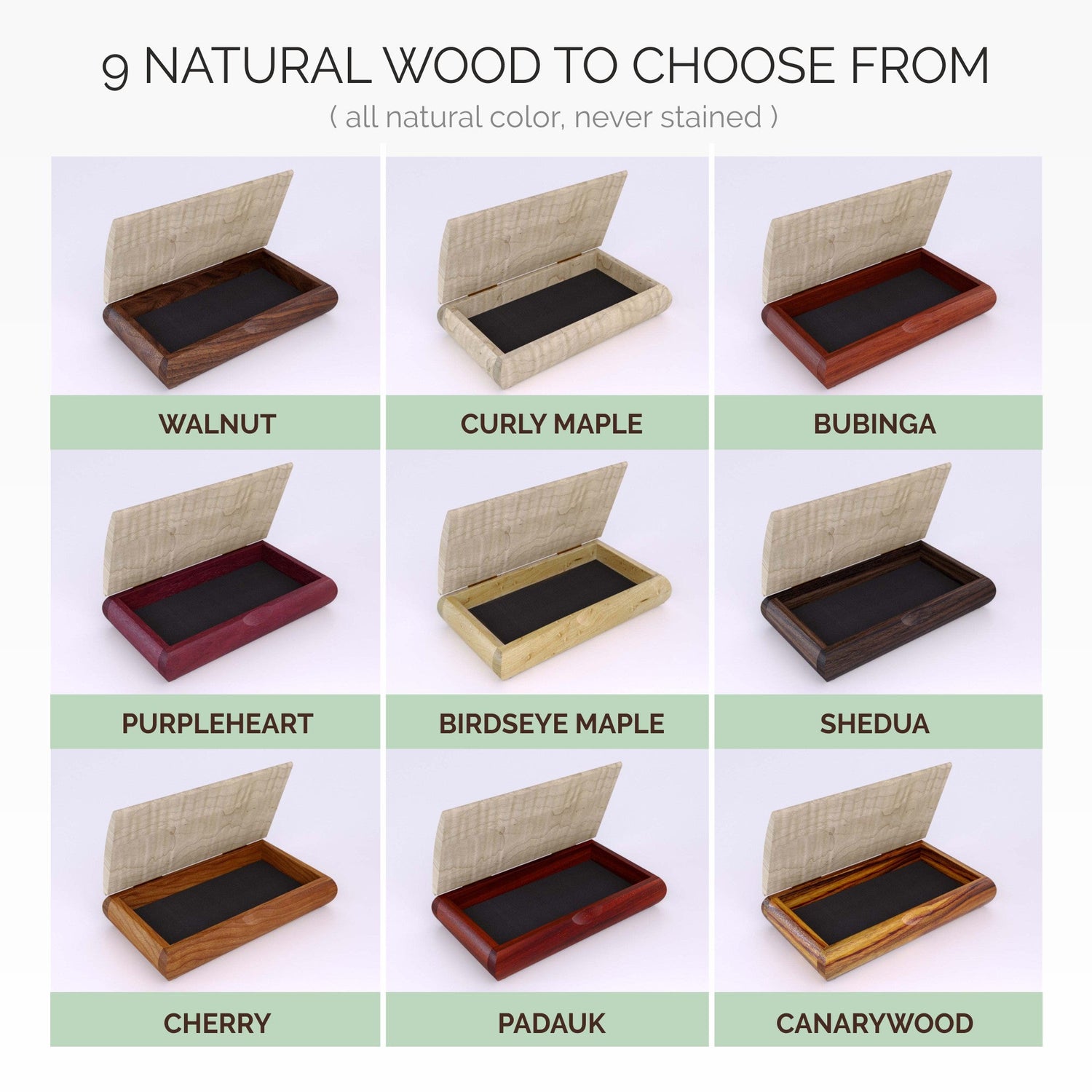 Each box is meticulously handcrafted by our master artisans in Northeastern Wisconsin/Michigan's Upper Peninsula, making it a truly one-of-a-kind piece of art. Made from premium, sustainably-sourced solid wood, the keepsake box boasts a smooth buttery finish and natural grain that highlights the wood's beauty.